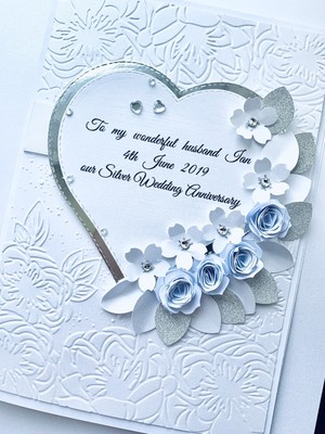 Handmade Personalised Wedding Anniversary Card 25th Silver Husband
