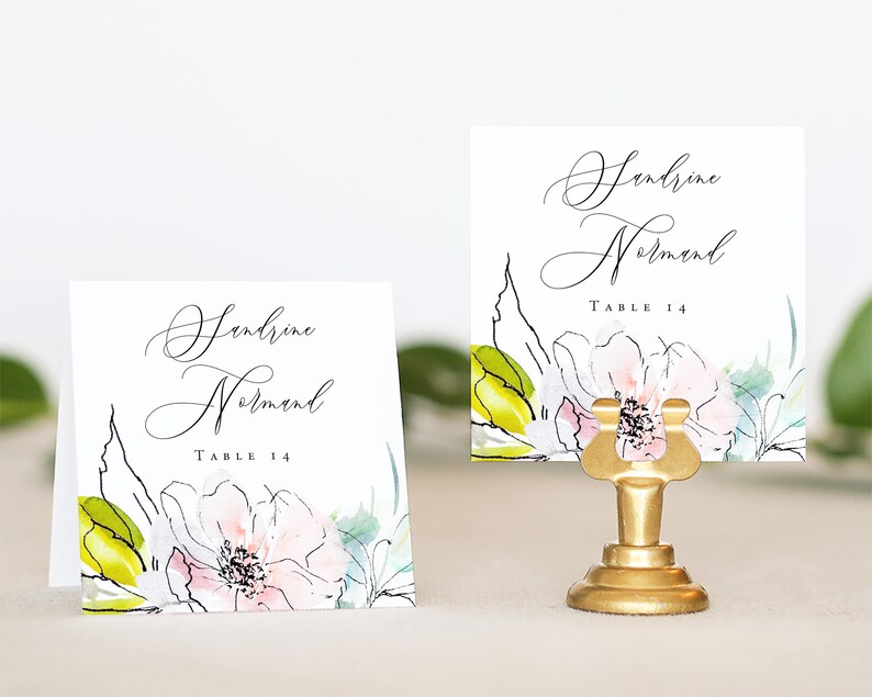 Name Card Wedding Watercolor Floral Floral Place Card Etsy