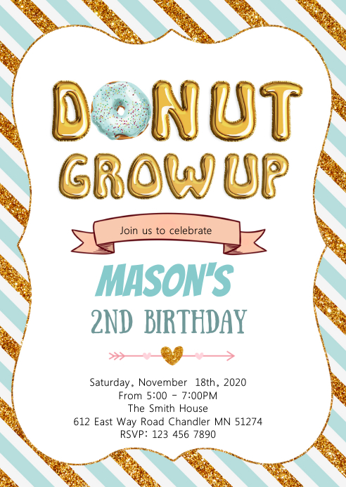 Donut Grow Up Boy Birthday Invitation Template Postermywall