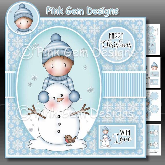 Andy And Snowman Downloadable Card Kit With Decoupage Etsy