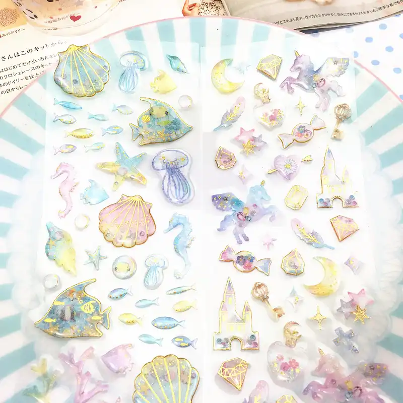 5sheets Lot Unicorn Castle Ocean Shell Self Adhesive 3d Epoxy