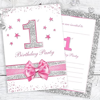 Olivia Samuel First Birthday Party Invitations Baby Girl Pink