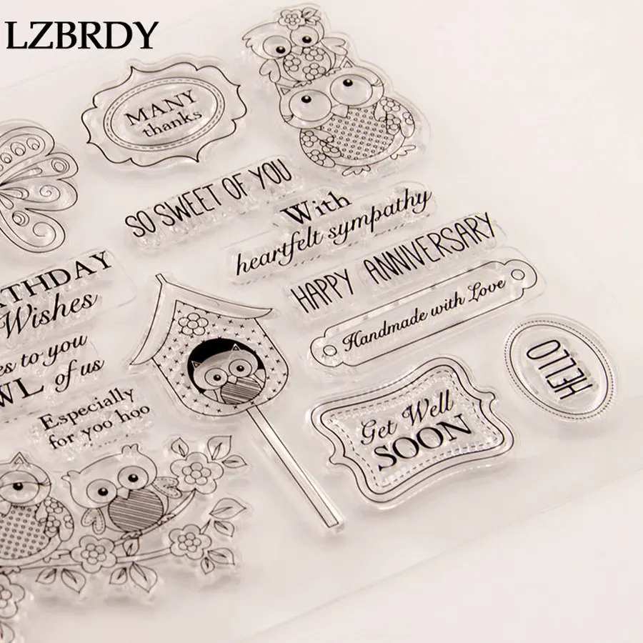 2019 New Cute Owl Butterfly Happy Anniversary Words Clear Rubber