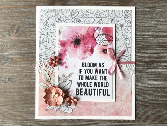 Beautiful Greeting Card Watercolor Pink Flowers Birthday Etsy